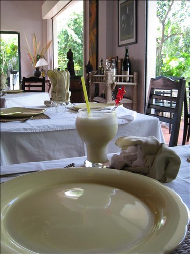 不同於Alliance Cafe以獨棟高挑的房子,和優雅有藝術氣息的用餐環境取勝,在舊市場附近,有一家[Aha],是此行最令我回味無窮的美食餐廳!它的老板和[和平飯店]是同一人,所以餐廳的裝潢氣氛很現代簡捷,最重要的是食物實在很好吃!即使過了半年,現在想起來,還是口水直流!2F據說有藝廊,不過我們沒上去